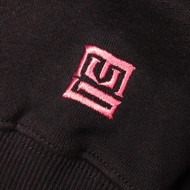 左胸と袖にピンクのワンポイント刺繍入りビッグスウェットです。